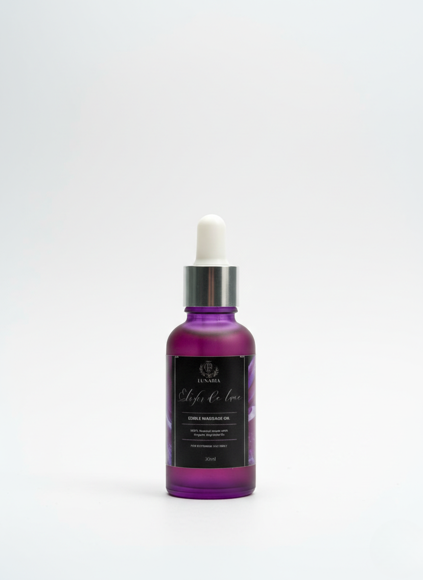 Elixir de Lune is a luxurious, edible massage oil infused with warm vanilla and skin-loving botanical oils. Its silky, fast-absorbing texture glides effortlessly over the skin, delivering deep hydration and leaving a soft, luminous finish that invites slow, intentional touch.